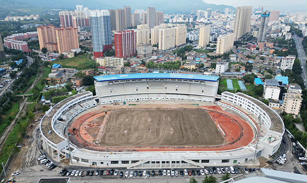 市体育中心体育场维修改造工程是我市重点民生工程。工程主要对体育场外墙、看台、运动场及健身步道等进行全面升级改造。目前,外墙施工已基本完成,看台翻新、运动场升级、健身步道铺设等正在有序推进。图为9月22日,无人机航拍的工程施工现场。晋向华摄
