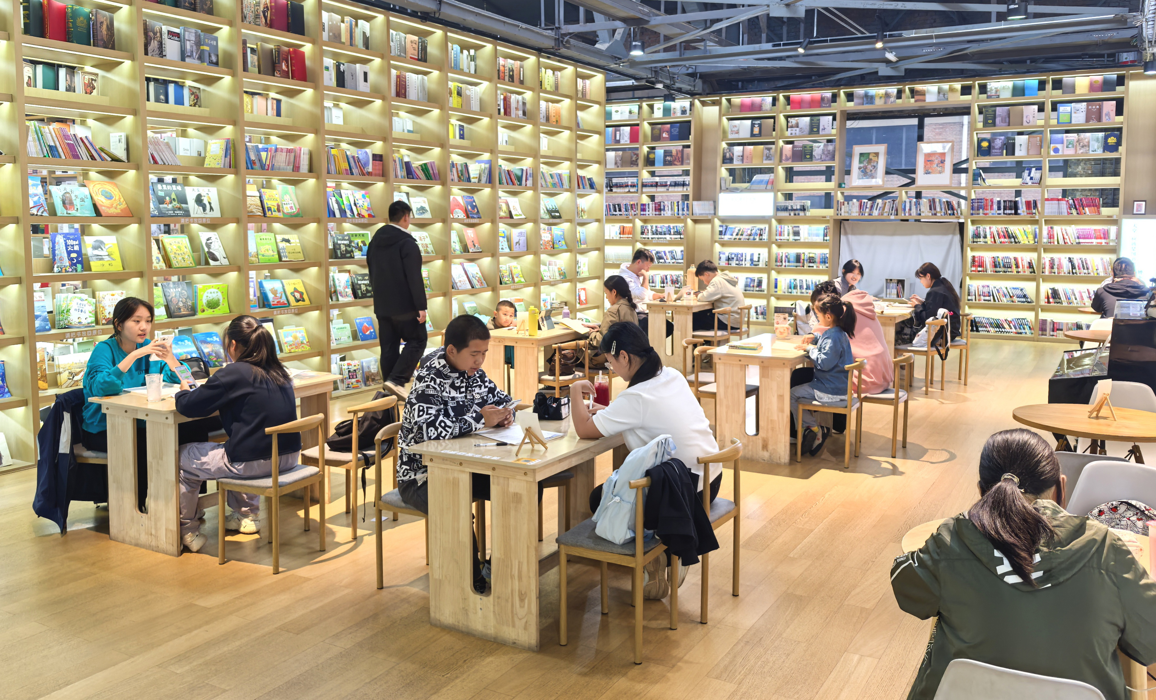 “双节”期间,“阳泉记忆·1947”文化园游客络绎不绝,园区推出房展会、惠民演出、书香山城、情景剧等一系列丰富多彩的文旅活动。据统计,国庆黄金周期间,2万多人走进文化园内的城市书房休闲阅读。图为10月6日,城市书房内打卡游客络绎不绝。刘 胜摄