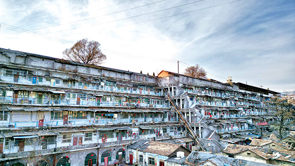华阳集团是全国最大的无烟煤生产基地,原三矿更是中国近现代煤炭工业发展的“活遗产、活标本”,是山西省首座煤矿“国家工业遗产”。目前留存的靠山窑洞,始建于1967年,是承载矿工记忆的标志性建筑。靠山窑洞为退台式石拱结构职工宿舍,其阶梯状分布的建筑群形似布达拉宫,位置紧靠矿井,真实反映了当时煤矿工人生产生活的场景,承载着一代又一代煤矿工人的光荣与梦想。