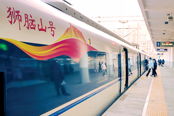 阳大铁路市域动车组列车作为我市“铁路公交”,以小编组、高密度、公交化的运营优势,为我市及周边群众提供高效便捷的出行服务。此次增设主题标识,是我市红色旅游资源与交通发展深度融合的创新之举,旨在打造“车轮上的红色课堂”,让“狮脑山号”成为展示我市转型发展与红色文化的流动窗口。张哲远摄