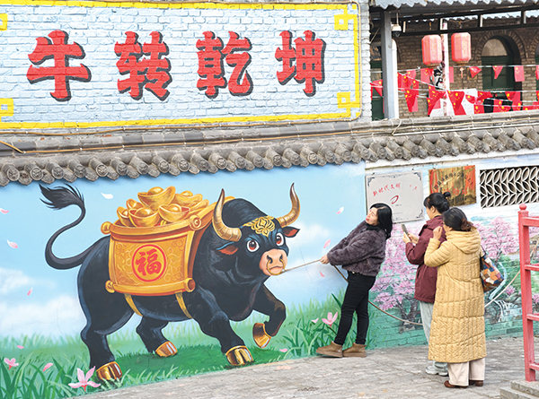 “走进桃林沟 撞上桃花运”“牛转乾坤”……近日,桃林沟景区新增多处“打卡墙”,吸引了不少游客前来打卡拍照。11月以来,桃林沟村聘请专业团队在景区内共绘制了十余面“打卡墙”,这些兼具创意与互动性的“打卡墙”,让景区凭借一幅幅“会说话、能出片”的墙绘,迎来了一波“打卡热”。晋向华摄