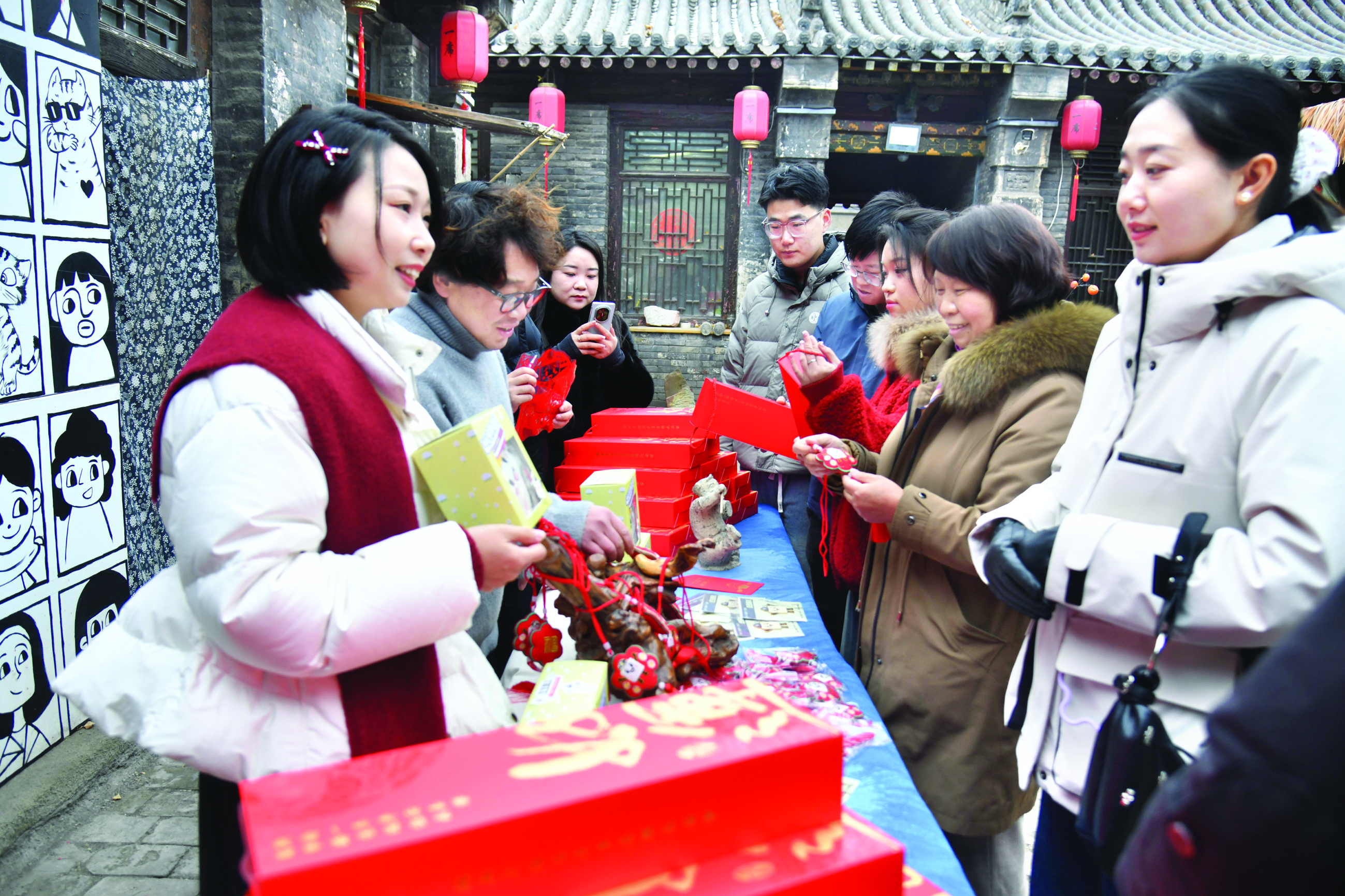2月9日,“凝脂手·豆妮送福”主题礼盒发布会在城区大阳泉村一席书院举行。发布会上,“豆豆妮儿”元素新春系列文创产品吸引了不少市民前来了解、选购。