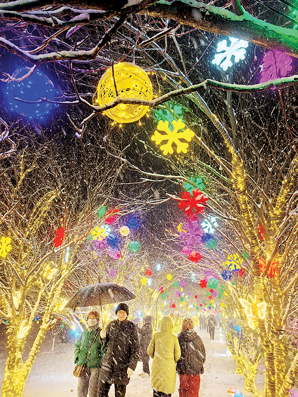市民雪中漫步矿区灯展点。刘胜