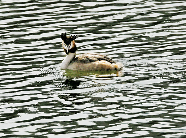 凤头䴙䴘外形独特,头顶黑色羽冠,身披棕灰色羽衣,颈部修长优雅。它们时而在水面悠闲游弋,时而扎入水中觅食,姿态十分惹人喜爱。因对伴侣忠贞相守,凤头䴙䴘素有“爱情鸟”的美誉。
