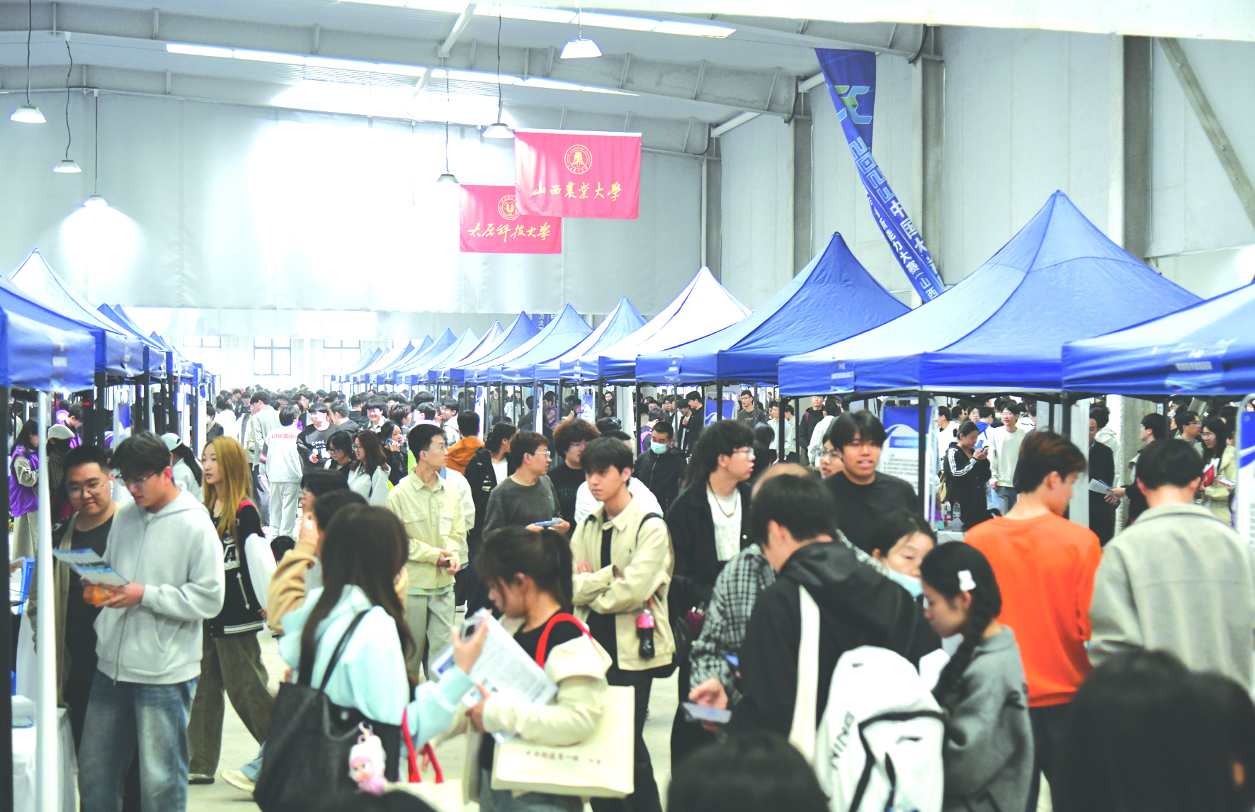 4月16日,由市委人才办牵头,市人社局、市工业和信息化局、市总工会、山西工程技术学院主办的2026年“宏志助航计划”暨“漾才汇泉 职引未来”山西工程技术学院春季大型招聘双选会在山西工程技术学院举行。本次招聘会汇聚了171家优质企业,涵盖工科、服务业等多个领域,精准匹配山西工程技术学院专业特色,推出优质就业岗位3000余个,为毕业生提供多元化、高质量的就业选择。据统计,本次活动进场5300余人次,达成求职意向551人,有效搭建了校企供需对接的坚实桥梁。招聘会期间,市委人才办、市人社局组织开展了“漾才汇泉 职引未来”专场宣介,帮助大学毕业生了解就业扶持、人才补贴等相关政策。刘 胜摄
