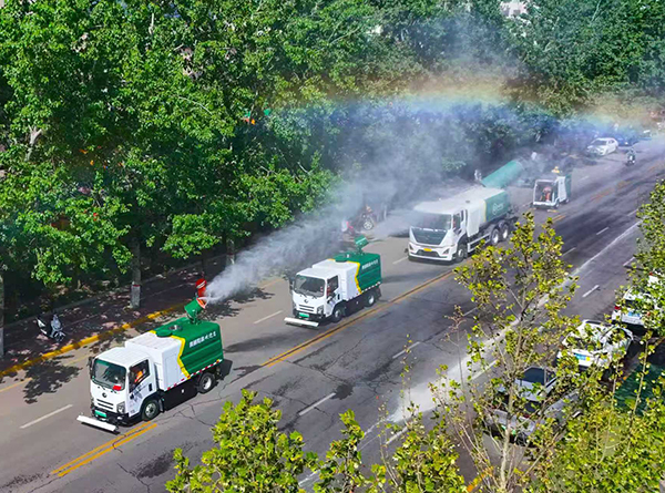 面对漫天飞舞的杨柳絮,连日来,阳泉高新技术产业开发区中环洁城市环境服务有限公司迅速响应,在作业中投入南博机器人、小型高压冲洗车及雾炮车等设备,与人工保洁形成合力,实现有效增湿、降尘与抑絮。张泽慧摄