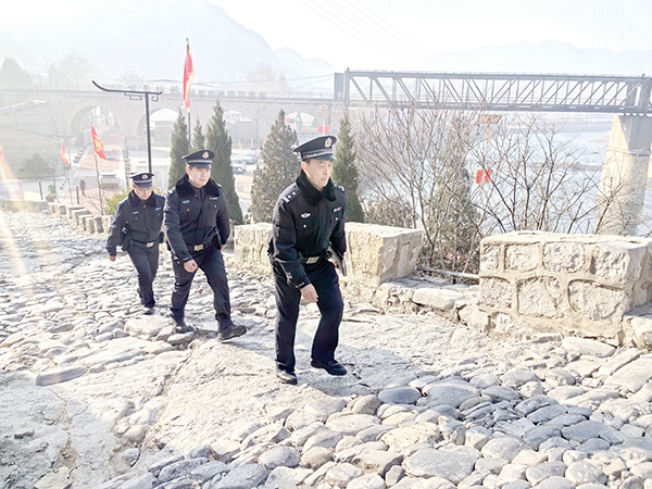 民警在娘子关景区巡逻。王耀云摄