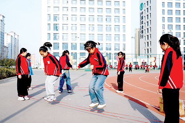 3月26日8点,高新区实验小学的操场上欢声笑语不断。孩子们三五成群地踢足球、打篮球、跳绳,进行着各种体育运动。不仅如此,跳皮筋、跳房子、滚铁环等传统游戏也重返校园……这是该校创新构建的“融健”体育课程体系中的体育“早读”,让孩子们以最佳状态迎接新一天的校园生活。