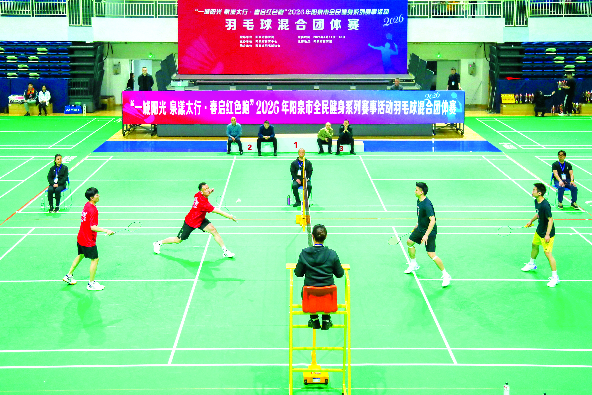 4月12日,由市体育局指导,市体育中心主办,市羽毛球协会承办的“一城阳光 泉漾太行・春启红色跑”2026年阳泉市全民健身系列赛事活动羽毛球混合团体赛在市体育中心体育馆收官。为期两天的比赛,吸引了58支代表队、700多名羽毛球爱好者参赛。