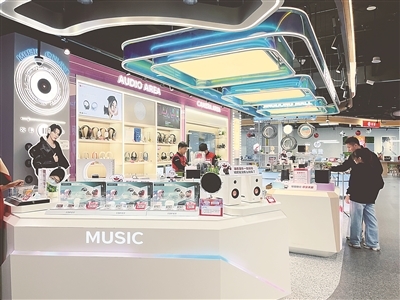 消费者正在京东MALL山西首店选购耳机。山西经济日报记者 李若男 摄