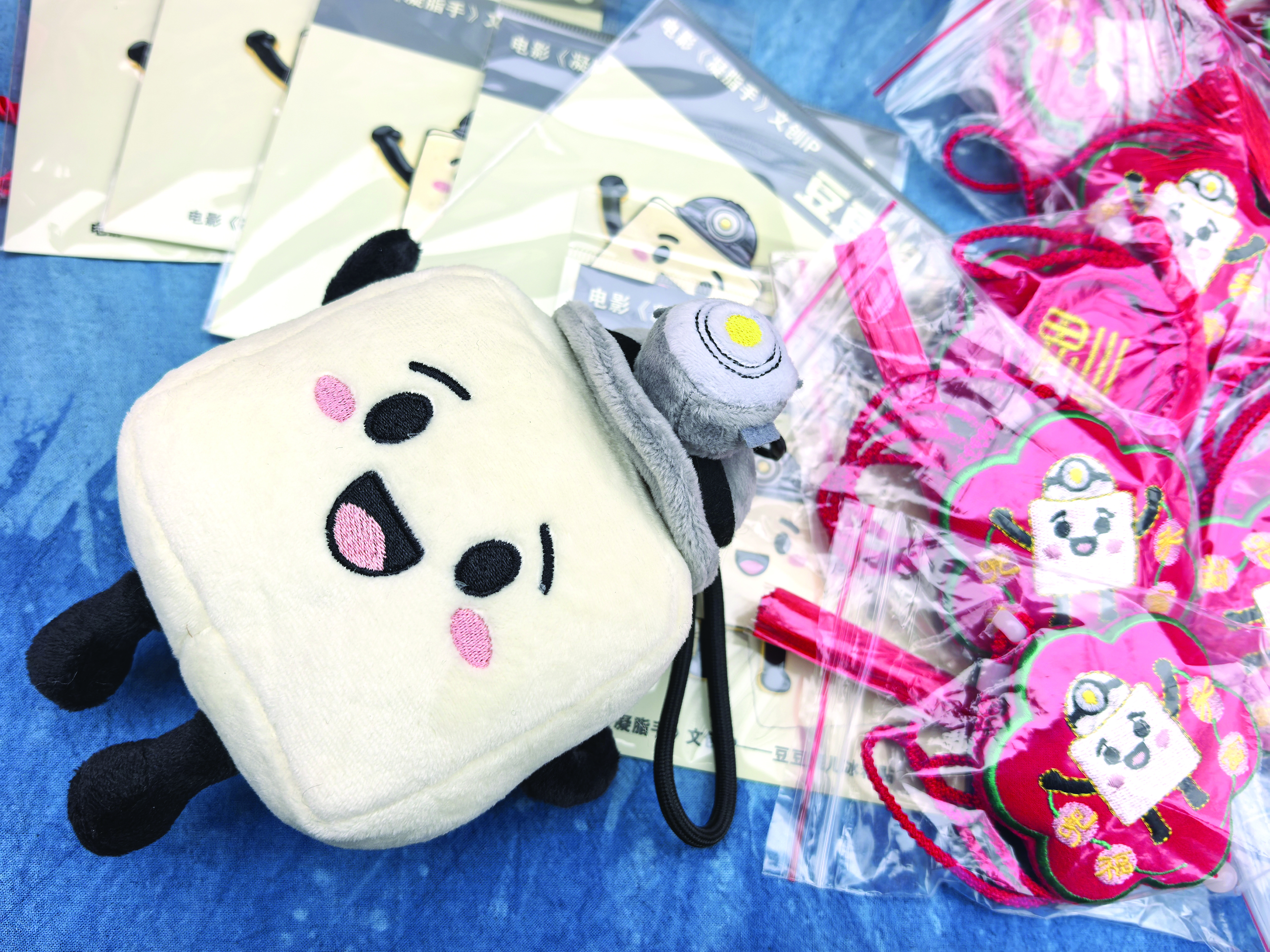 “凝脂手·豆妮送福”主题礼盒是继“豆豆妮儿”玩偶和冰箱贴之后,阳泉本土制作团队融兴(阳泉)知识产权公司携手导演胡玫与市级非遗项目布艺刺绣技艺代表性传承人梁兰花共同推出的又一新作。礼盒将电影美学、书法艺术与阳泉非遗技艺巧妙相融,打造出一系列“可以带回家的电影记忆”。刘 胜摄