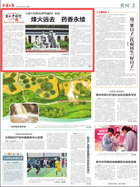 《山西日报》头条——八路军药岭山利华制药厂旧址:烽火远去 药香永续