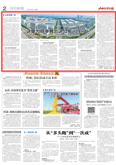 从“小不点”到“小巨人”,从单点突破到全链协同,阳泉高新区以“专精特新”为引擎,加快创新链、产业链、人才链深度融合,推动更多中小企业成长为产业链上的关键力量,为经济高质量发展注入持久动能。