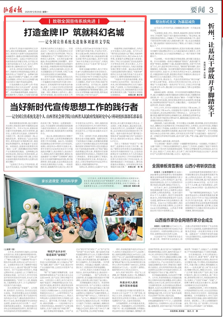 筑牢内容创作的根基,培育出文化事业的参天大树。刘慈欣文学院历时三年编纂的《刘慈欣创作年谱(1999—2022)》,系统梳理作家刘慈欣创作脉络,获第二十六届北方优秀文艺图书奖二等奖,成为研究中国科幻文学的重要文献。同时,厚植本土创作沃土,建立签约作家制度,重点扶持10部本土科幻作品;对创刊40余年的《娘子关》文学期刊进行改版升级,开设科幻专栏,累计出版244期,持续培育创作新生力量。在国际传播方面,《流浪地球》(捷克语版)等作品成功输出,获评中宣部“2021年优秀地方文化外宣品”,实现刘慈欣科幻文化从“引进来”到“走出去”的关键突破。