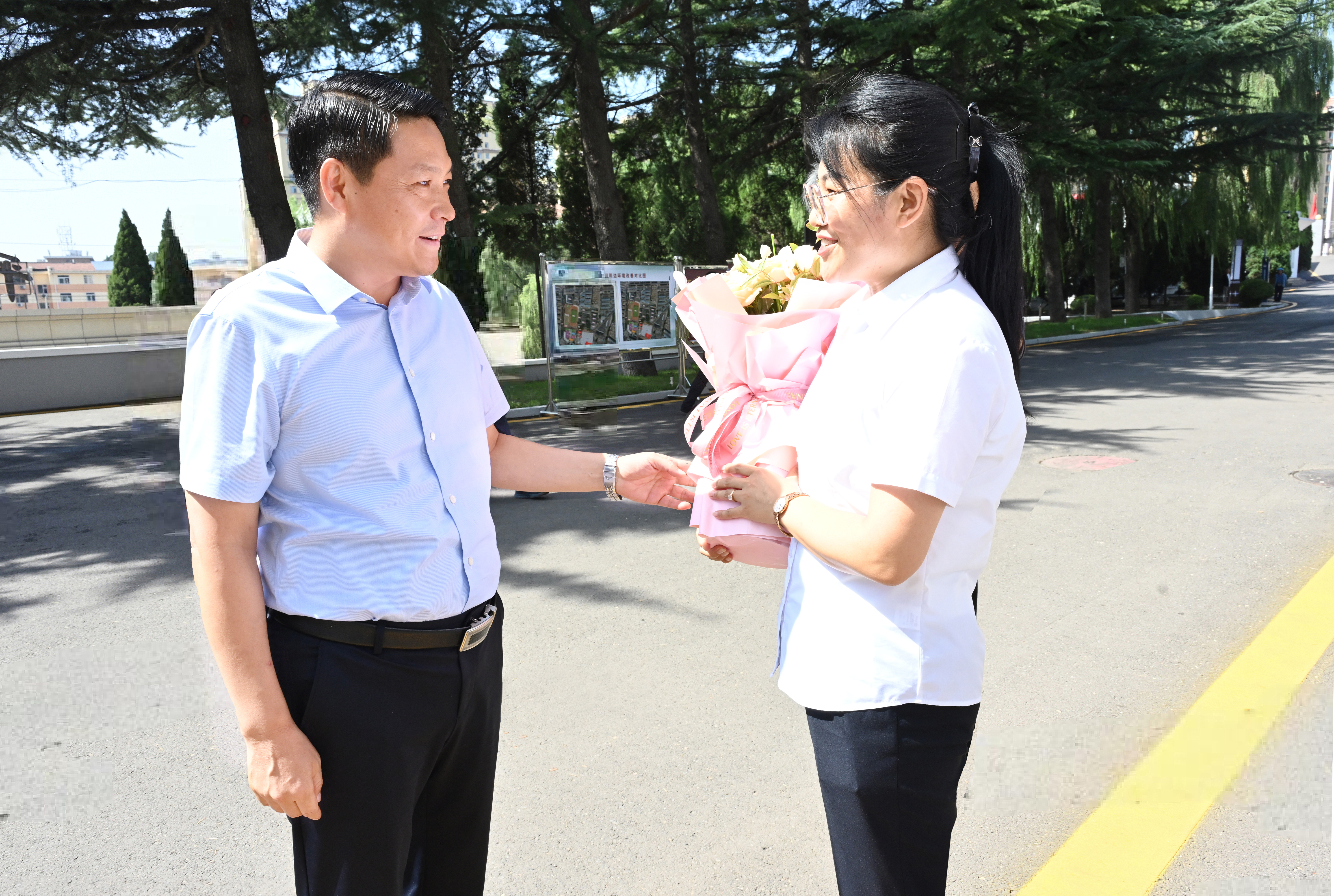 平定一中是一所百年老校,是山西最早兴办新学的七所中学之一,办学历史悠久,文化积淀丰厚,育人成果显著。鞠振向教师代表送上鲜花,并与大家合影留念,勉励大家始终牢记为党育人、为国育才的初心使命,大力弘扬教育家精神和高尚师德师风,坚持教书和育人相统一,积极探索新时代教育教学方法,强化学生心理健康教育,提升学生综合素质,着力培养担当民族复兴大任的时代新人。教师代表表示,将以更高标准深耕课堂,全力以赴提升育人质效,为推动新时代教育事业高质量发展贡献力量。