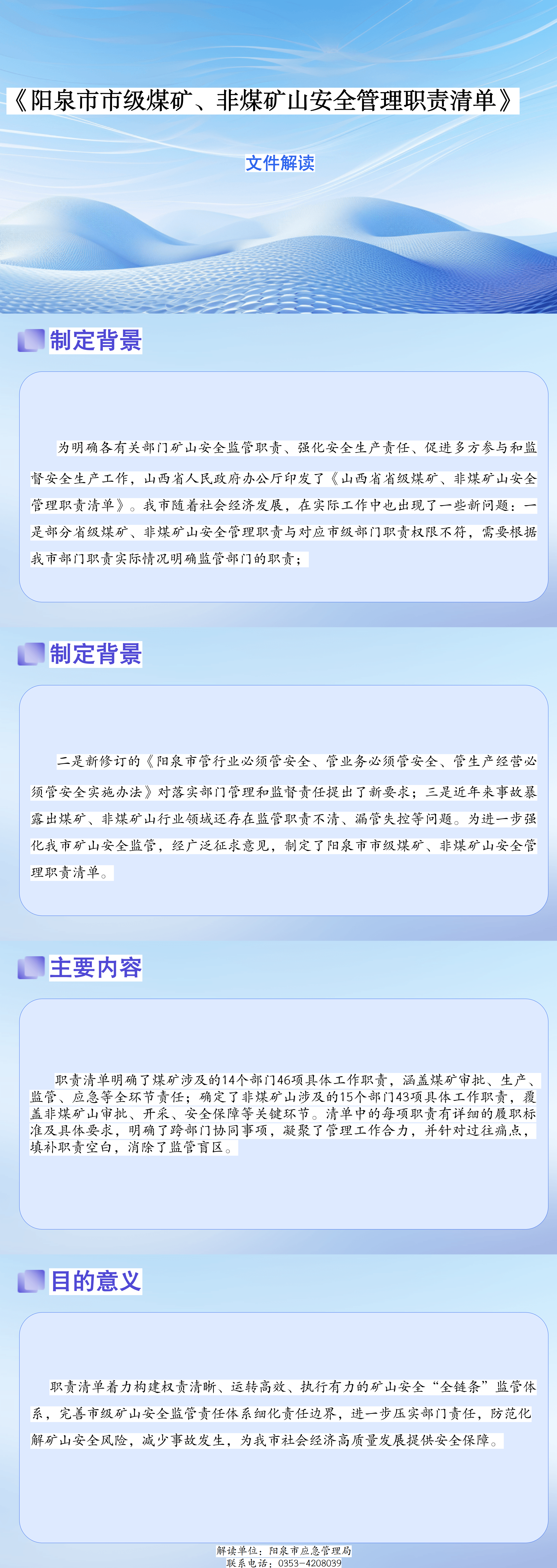 《阳泉市市级煤矿、非煤矿山安全管理职责清单》文件解读