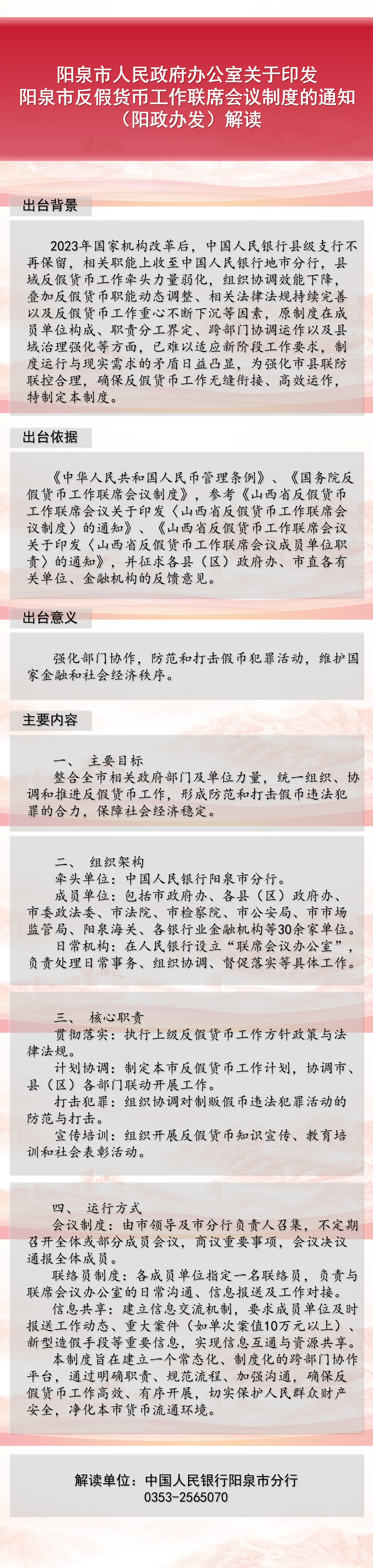 阳泉市人民政府办公室关于印发阳泉市反假货币工作联席会议制度的通知(阳政办发)解读